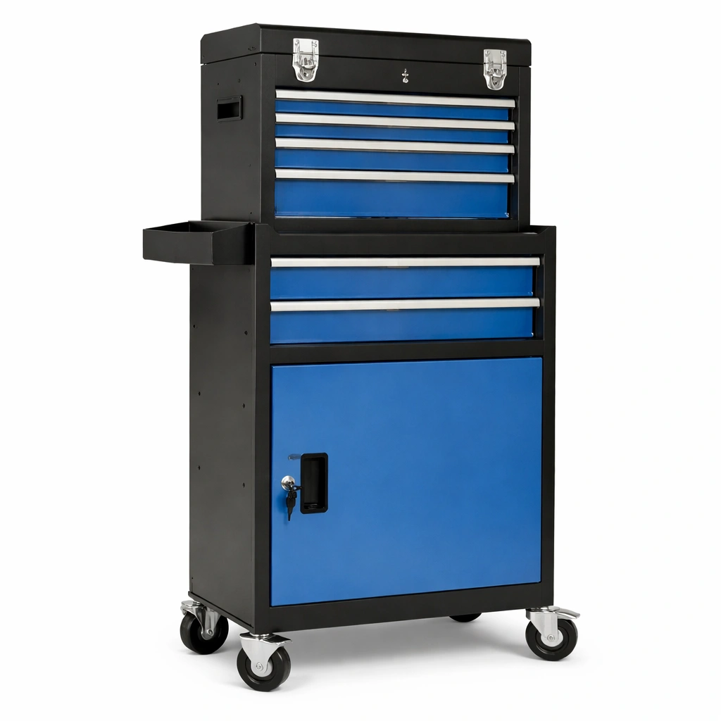 Carro de herramientas metálico con 6 cajones de acero azul negro